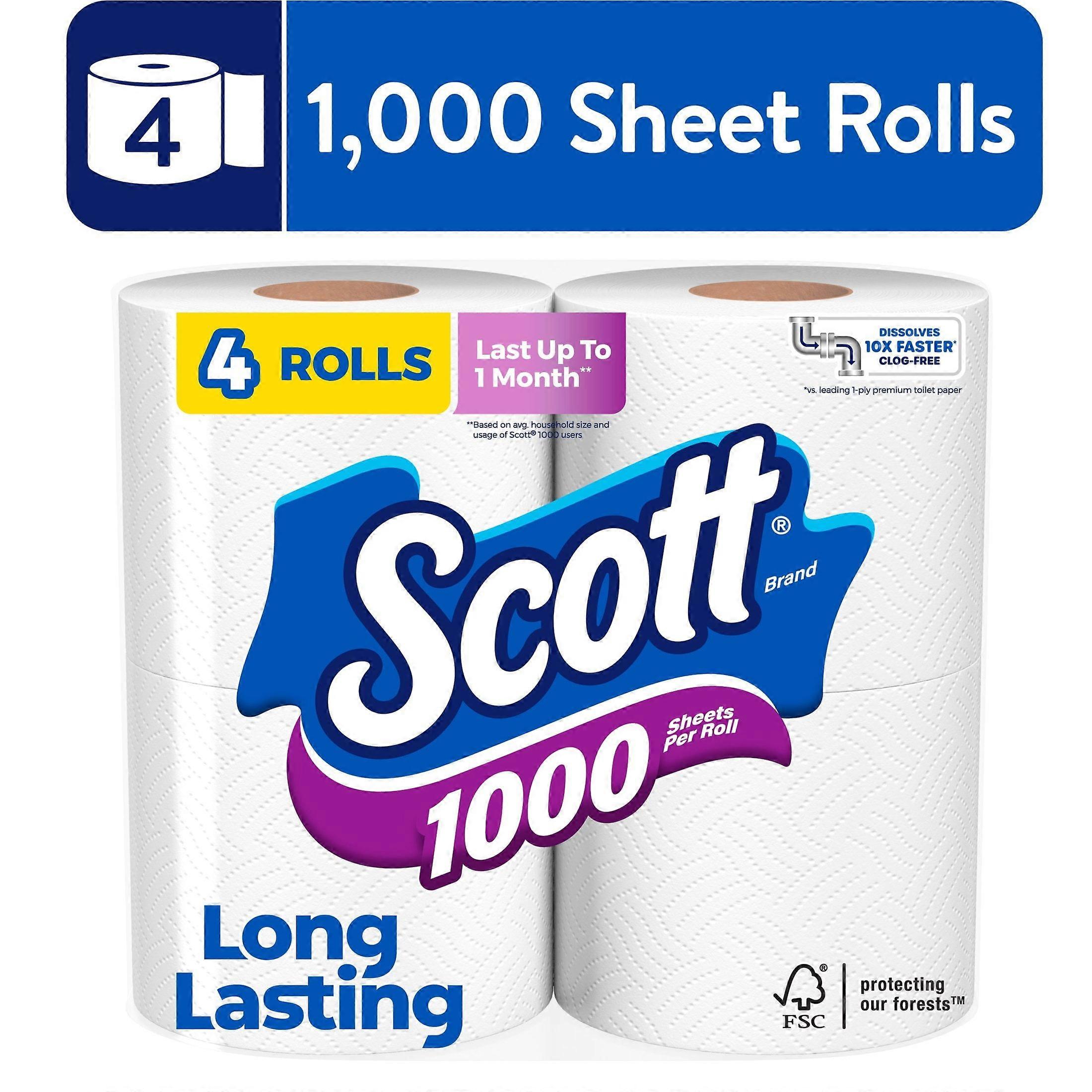 Scott 1000 Toilet Paper, 4 Rolls, 1,000 Sheets per Roll