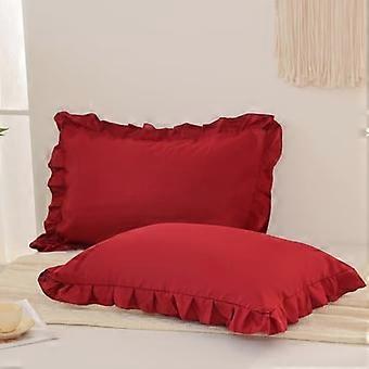 Burgundinväriset tyynyliinat, vakiokokoiset tyynyliinat, 20 x 26 tuumaa, söpö röyhelöinen yksivärinen tyynyliinasetti, 2 pehmeää punaista tyynyliinaa