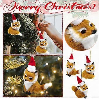 Plush Woodland Animal Christmas Ornaments, Faux Fur Hanging Decor for Tree, Wall, Holiday Party (Hat Style)