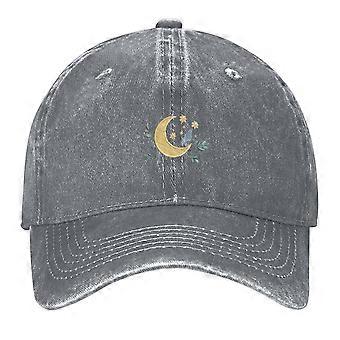 Celestial Moon Print Vintage Wash Dad Hat, Adjustable Curved Brim, Made in USA – Casual Outdoor Fishing Cap for Men & Women