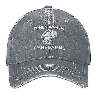 Vintage Wash Dad Hat with “Women Want Me Fish Fear Me” Print, Adjustable Curved Brim Baseball Cap, Made in USA, Unisex Fishing Cap