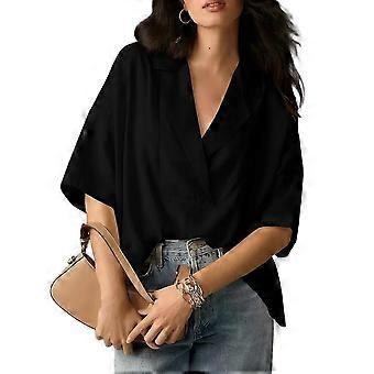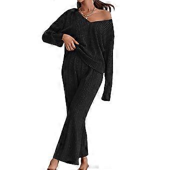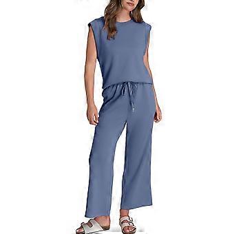 Naisten 2-osainen oloasu-pyjama-asu, napitettava pitkähihainen crop top -shortsit, pinkki, M