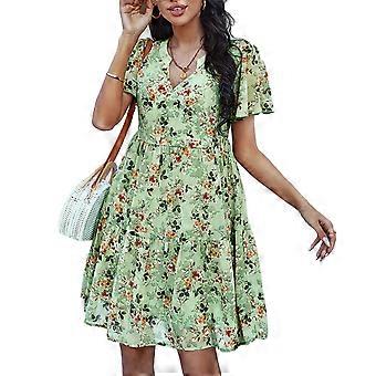 Naisten kukkakuvioinen mekko A Line Lyhythihainen V pääntie Korkeavyötäröinen Rento kesämekko päivittäiseen käyttöön Vihreä XL