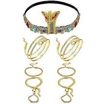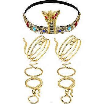 Käärmeenmuotoinen päähine, viisi settiä, cosplay-rekvisiitta juhliin osallistujille, egyptiläistyyliset rannekorut esityksiin, kestävä rakenne