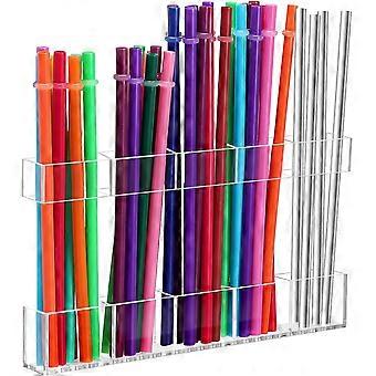 Large Acrylic Straw Holder for Cabinet Door, Adjustable Organizer with Strong Adhesive, Transparent