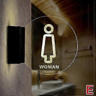 Wall Mount Toilet Sign, LED Restroom Sign, Acrylic Round Bathroom Lighted