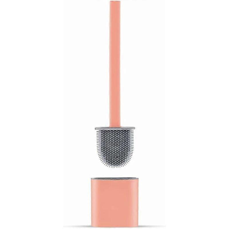 Silicone Toilet Brush Holder, Flat Toilet Brush and Holder, Anti-Drip, Antibacterial, Quick Drying, Odorless, Pink