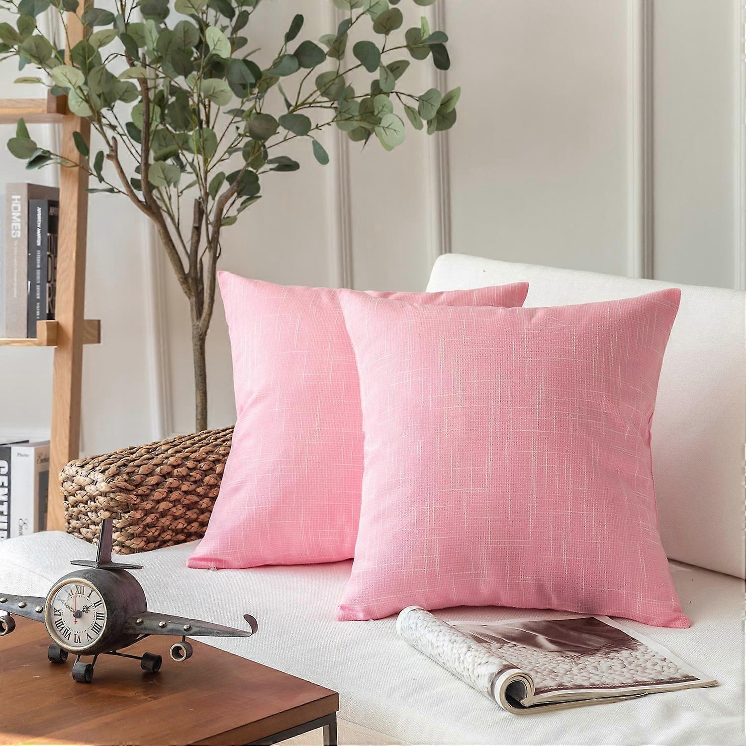 Soft Textured Linen Burlap Series Decorative Throw Pillow Covers, 22" x 22", Light Pink, Set of 2