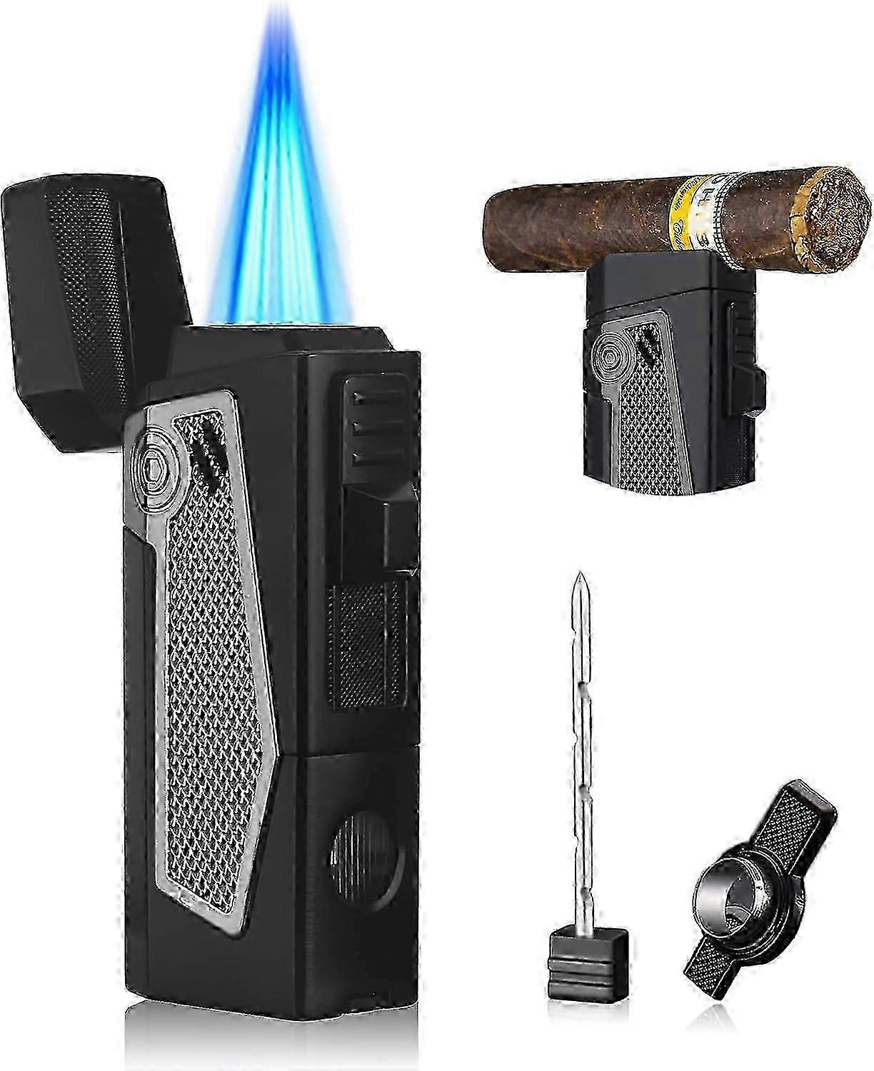 Torch Lighters Quadruple 4 Jet Flame Metal Refillable Butane Lighter Gadgets for Men Gift Ideas (Black) 25-26