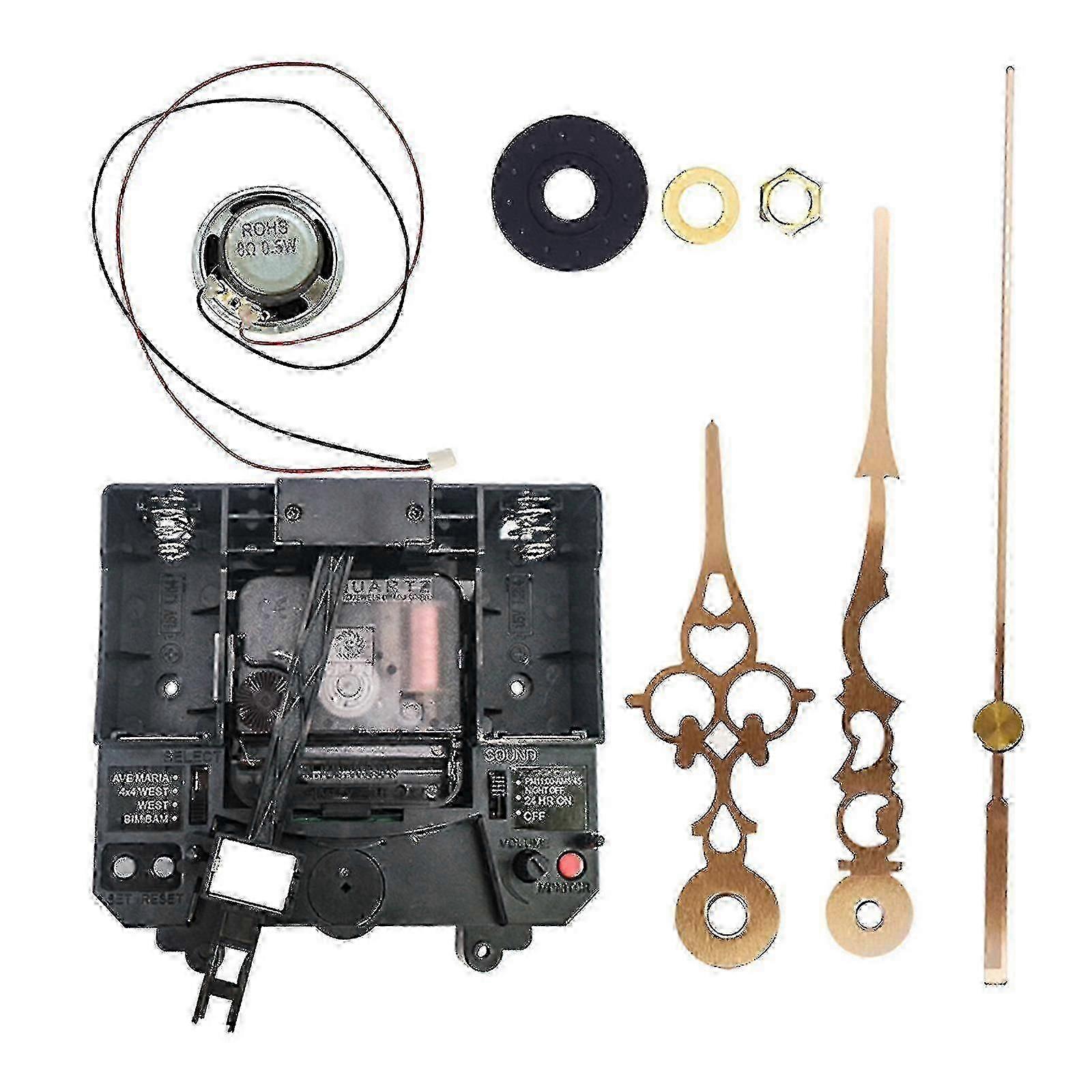 Music box wall clock movement, 17mm long shaft, silent and DIYable