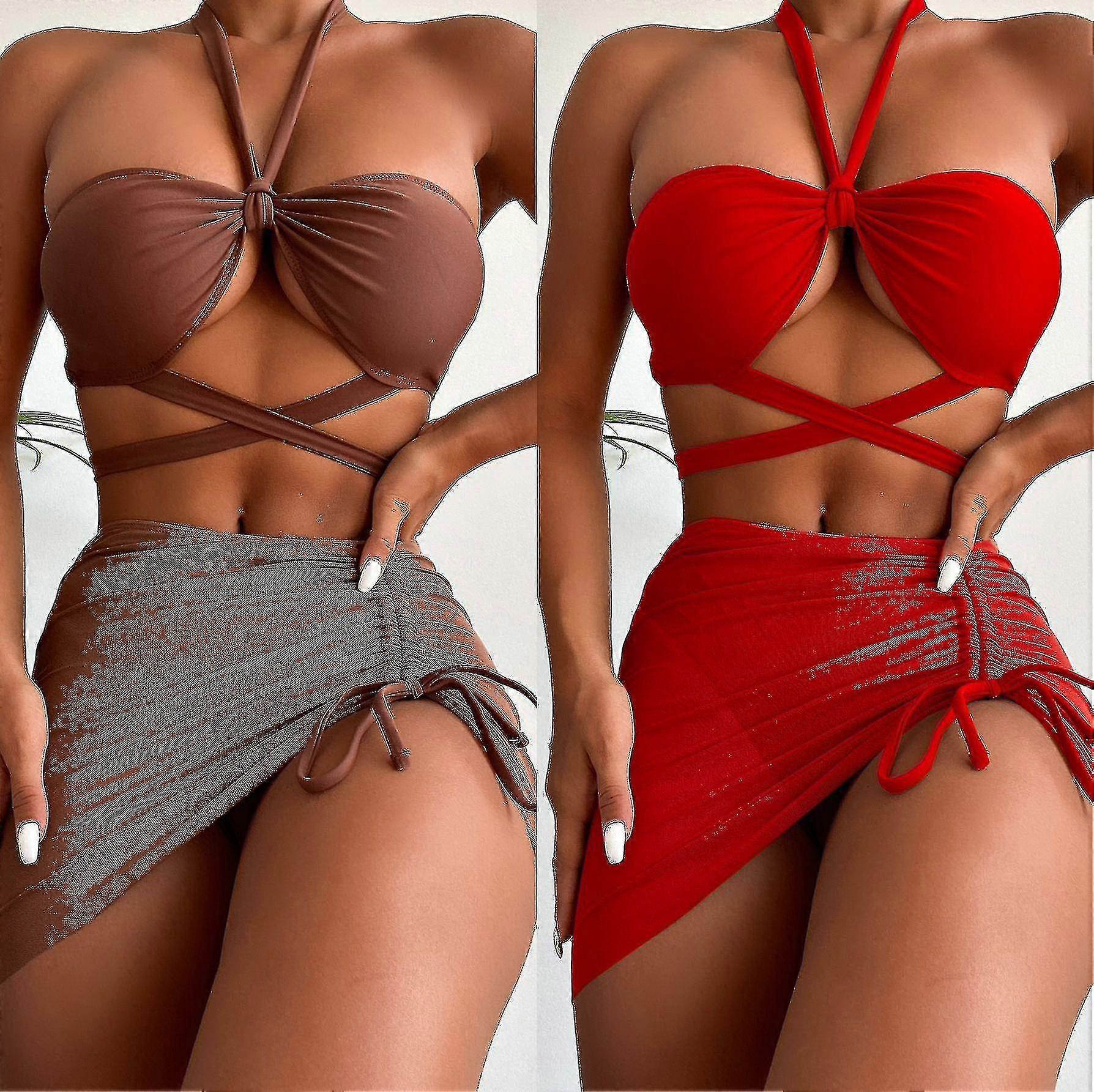 Solid Color Three-piece Split Swimsuit Beach Vacation Babes Sexy Bikini