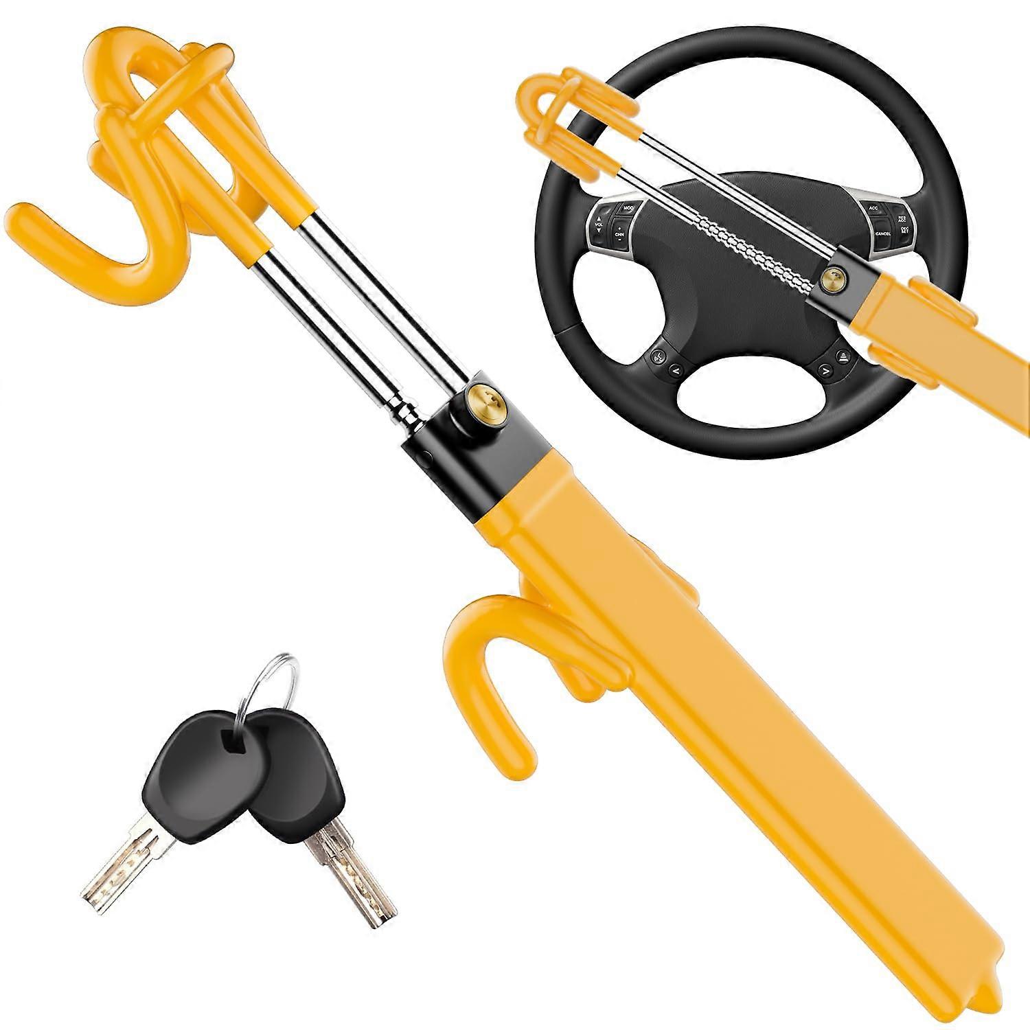 Steering Wheel Lock Universal Adjustable Double Hook Heavy Duty Car AntiTheft Device Yellow