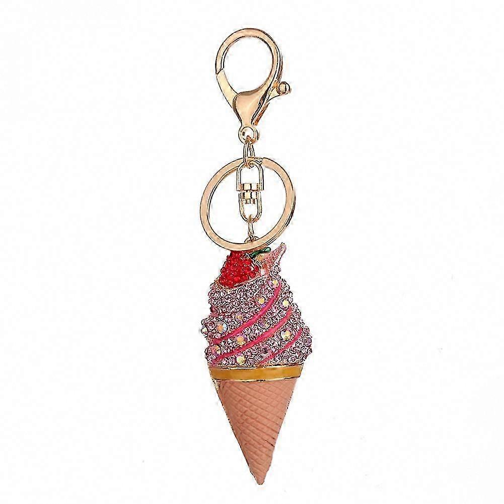 Rhinestone Key Chain Holder Ring Ice Cream Shape Alloy Keyring Car Bag Decoration (Pink)