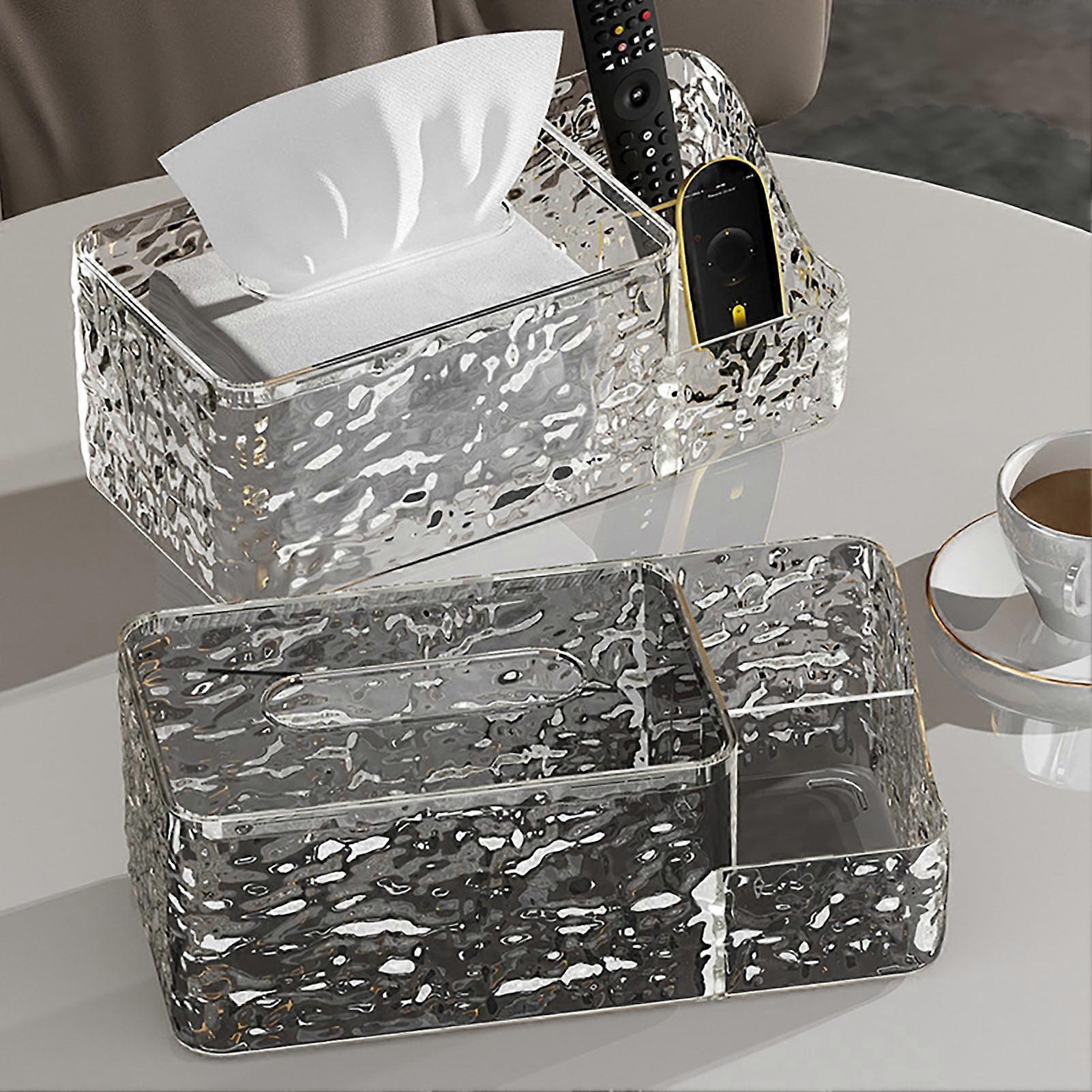 SUSUchens Tissue Box Paper Towel Holder Large Capacity Smooth Edge Burr-Free Luxury Style Paper Dispenser Desktop Decoration Clear Grey