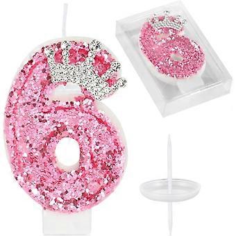 Birthday Candle Number, Pink Crown Birthday Candle for Cake, Glitter Number 6 Candle Cake Decoration (Pink 6)