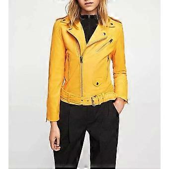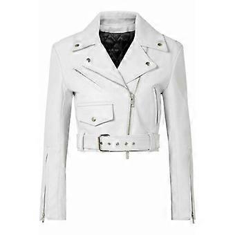 Käsintehty naisten aito lampaannahkainen nahkatakki, elegantti valkoinen moottoripyöräilijä