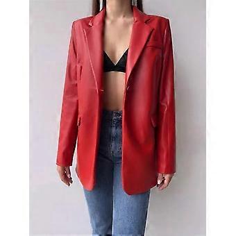 AL KHALID Punainen Aitoa Lampaannahkaa Naisten Klassinen Napitettava Tyylikäs Juhlableiseri