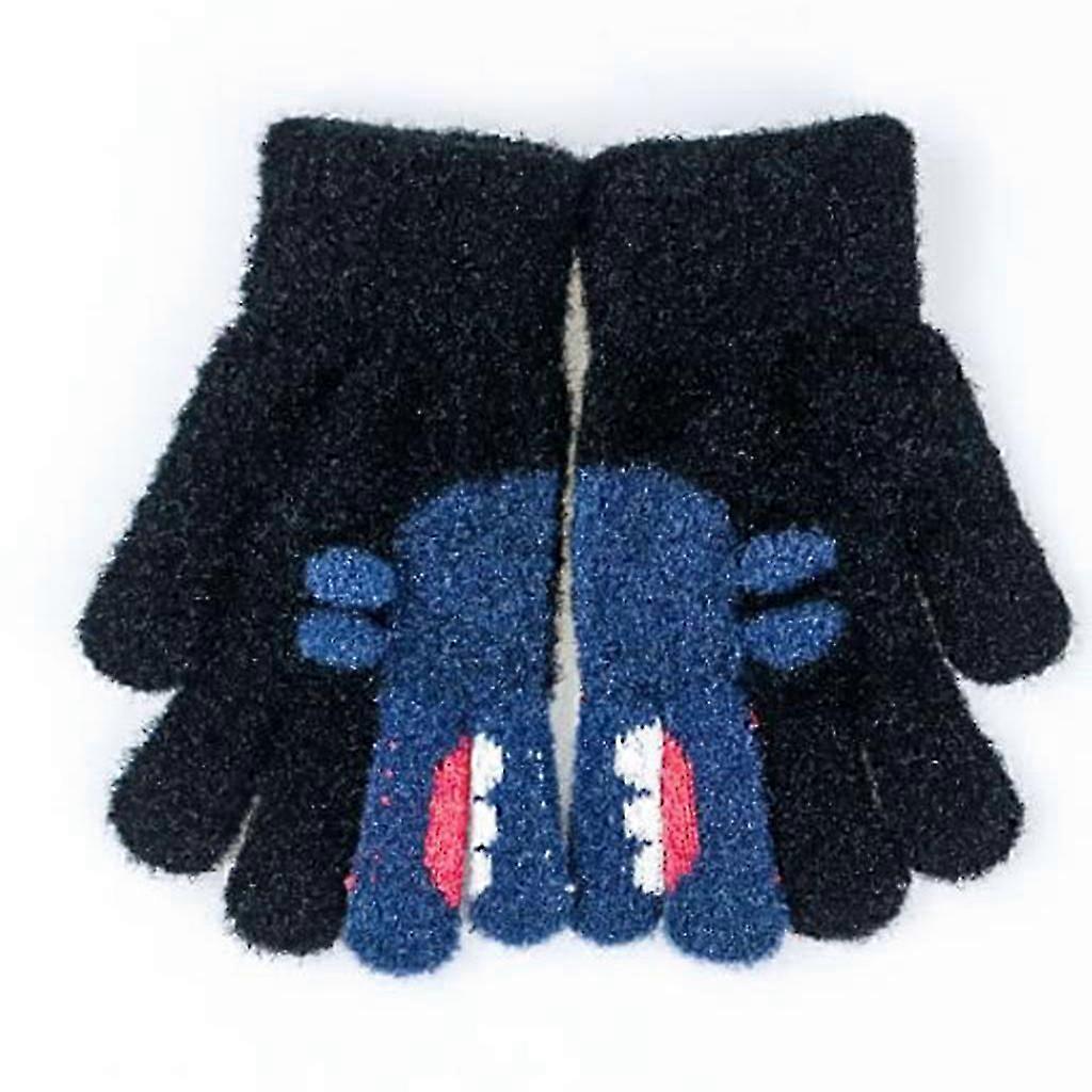Winter and Autumn Cartoon Printed Full Fingers Cartoon Gloves Windproof Animals Boys Kids Knitted Gloves Mittens Green