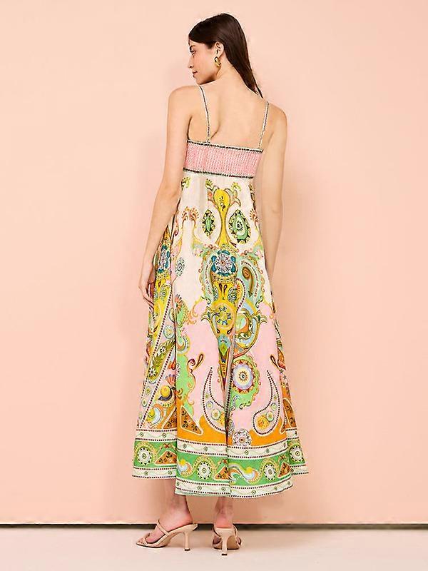 Temperament printed high-waisted and swing halter dress woman