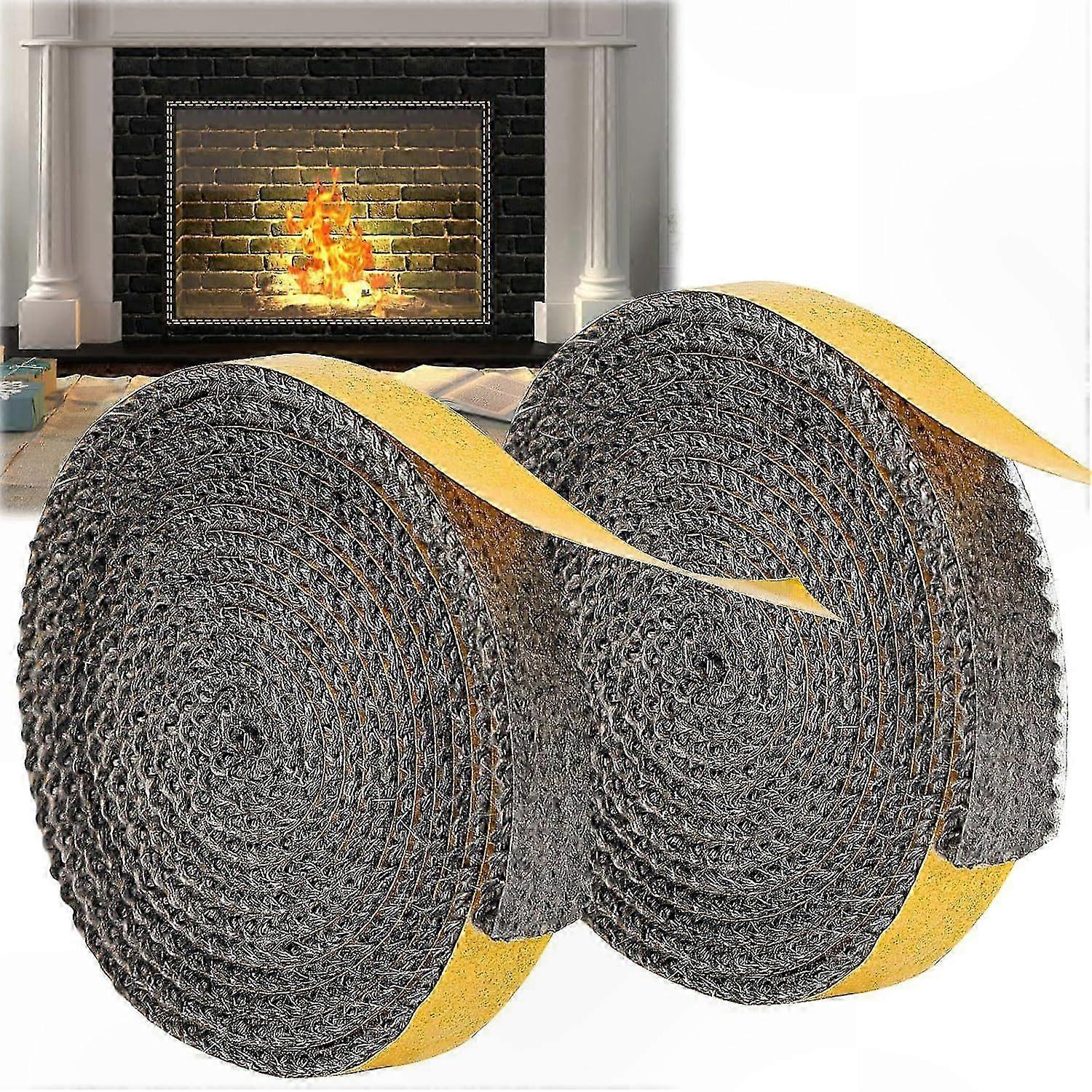 Fireproof Sealing Tape for Fireplace, 2 Pieces Self-Adhesive Door Seal, 3mm x 10mm x 2m Heat-Resistant Gasket Strip