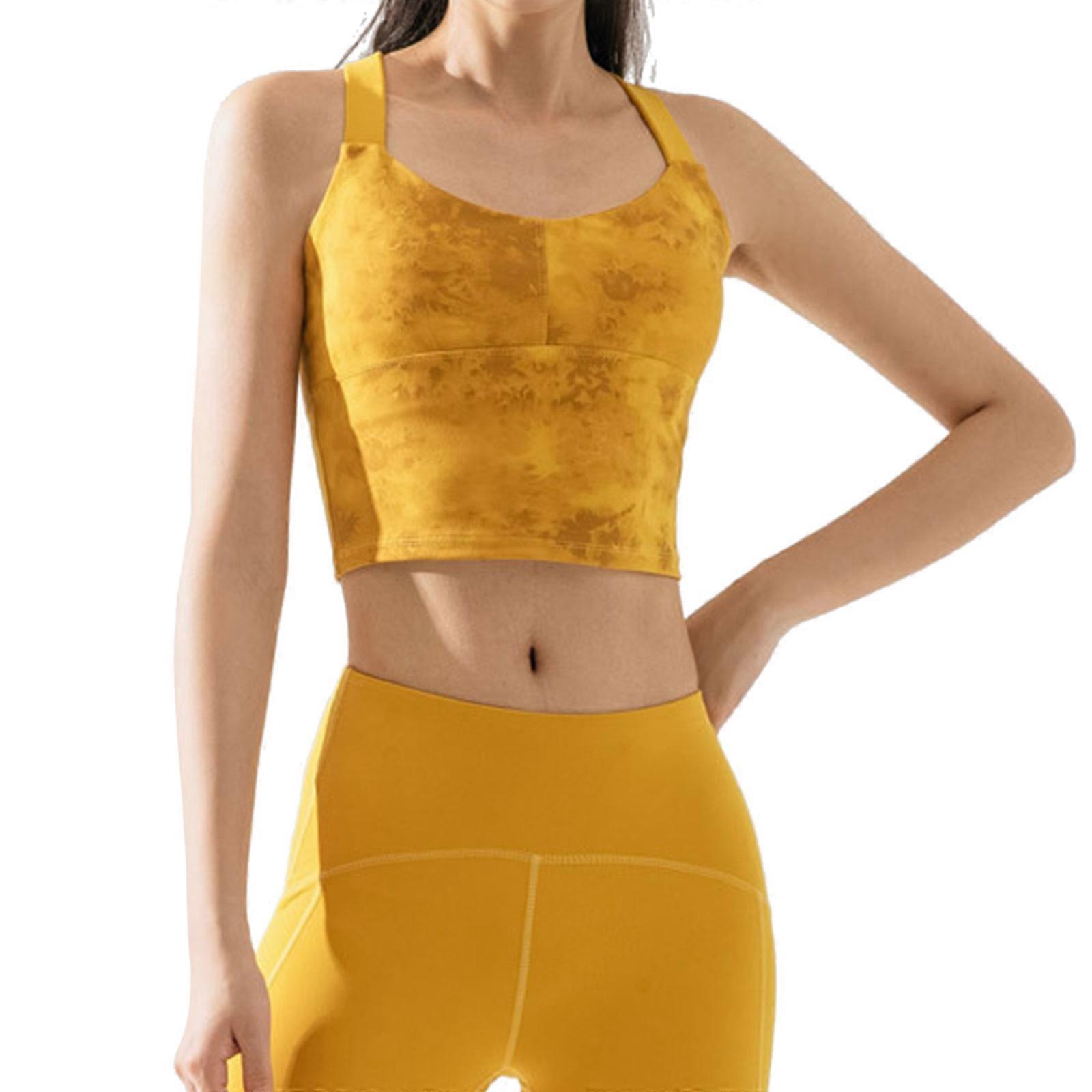 for Cross Back Strappy Workout Bras Padded Wirefree Yoga Sports Bra Mango Yellow XL