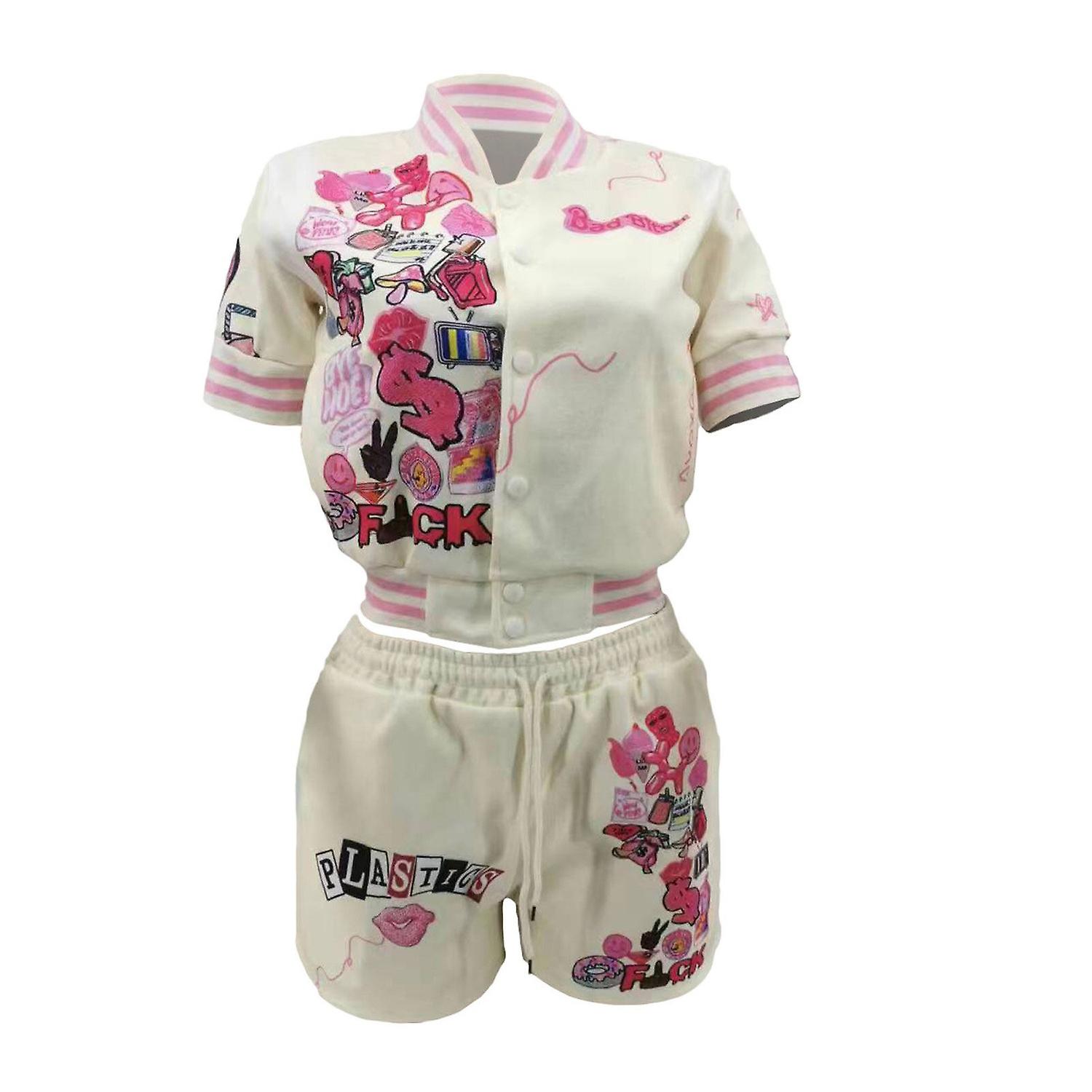 Sleek Beige Women's 2 Piece Baseball Jacket and Bodycon Shorts Set