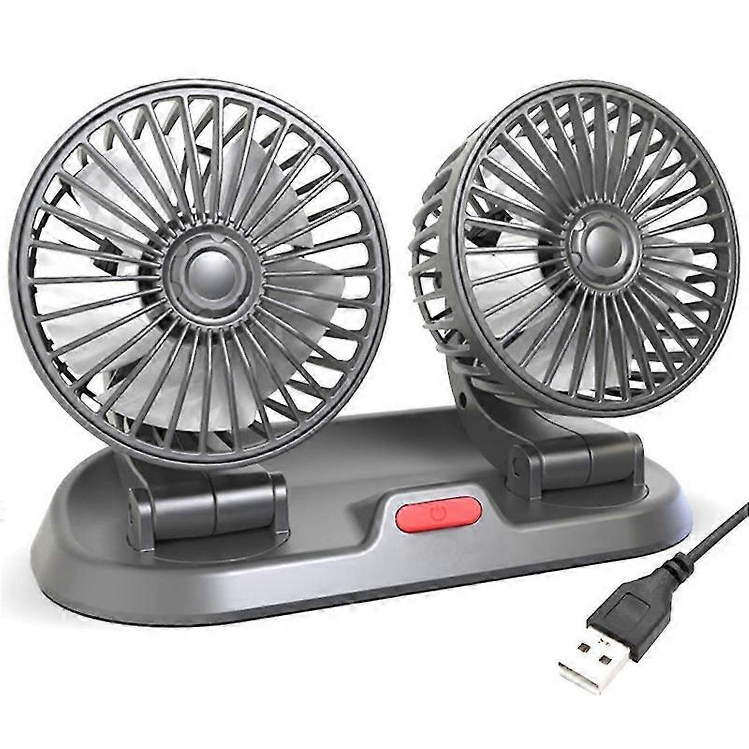 USB Car Fan Double Head Fan Portable Auto Cooling Fan Cooling Big Wind Electric Fan Car Folding Fan