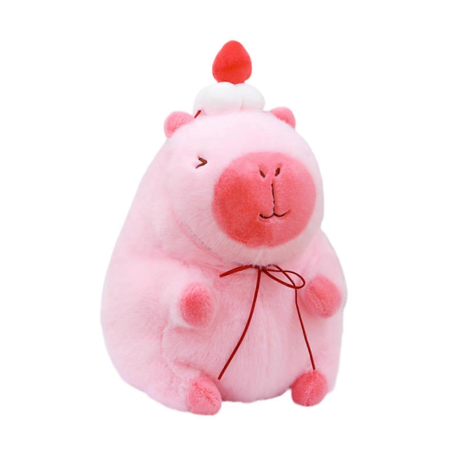 Pink Capybara Plush Toy Lovely Car Decoration for Adults Boys and Girls Baby top with cake 23cm