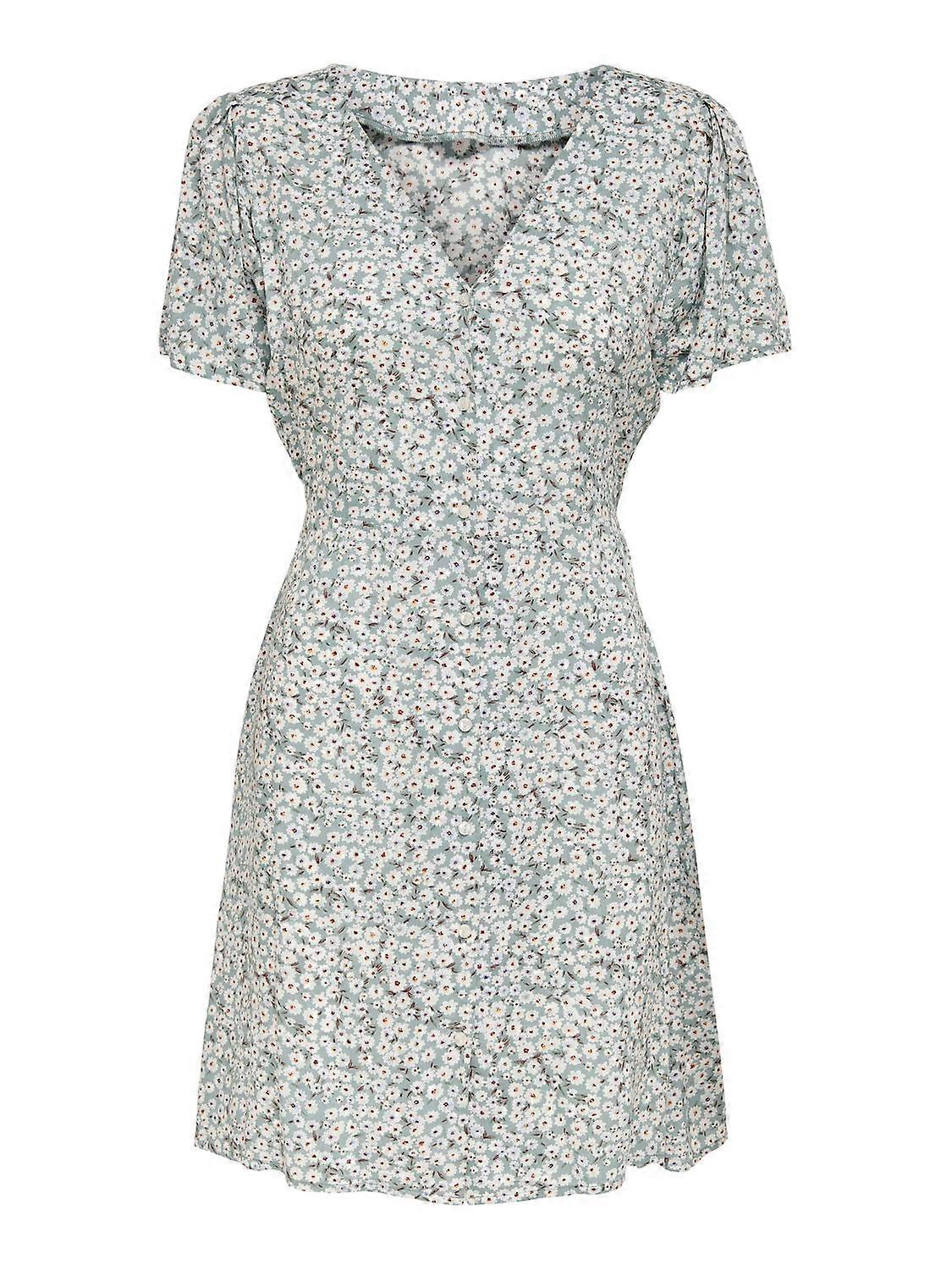 ONLY Damen Mini Kleid Sommerliches Design Muster Blusenkleid Kurzarm Dress