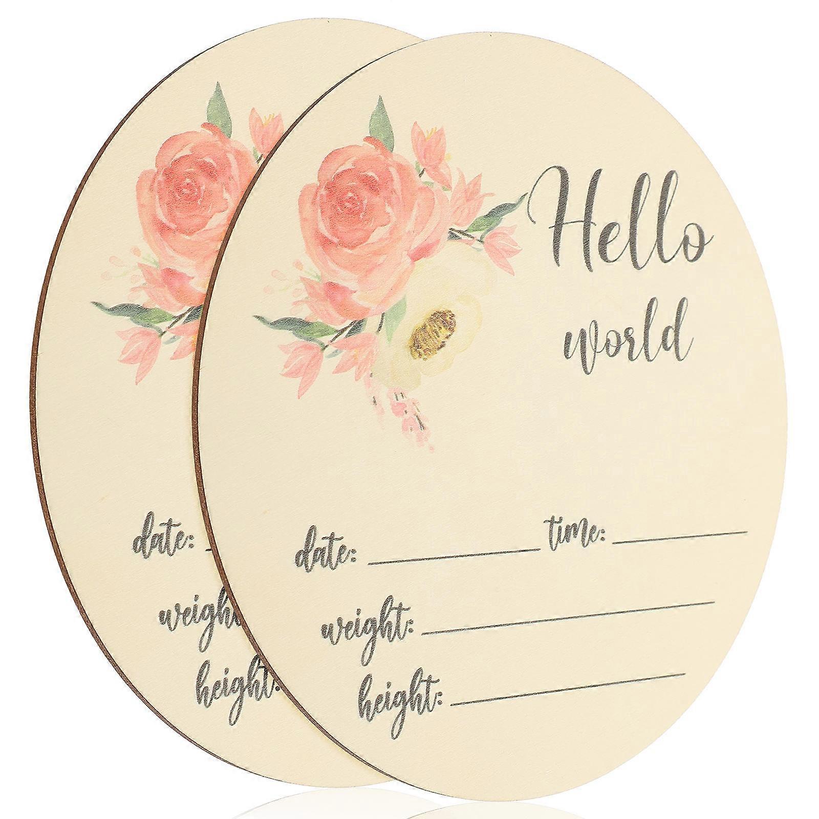 Baby Birth Announcement Sign 2Pcs Round Newborn Recording Information Assorted Color Durable Wood