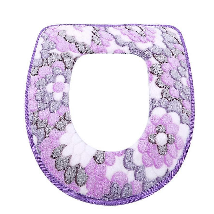 Waterproof Universal Big Flower Coral Velvet Toilet Seat Cushion Velcro Toilet Seat Cover Household Toilet Seat