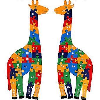 Colourful wooden animals giraffe jigsaw puzzle with wooden alphabet blocks number blocks. One side are 26 alphabet and the other side are 26 numbers. Buy 1 get 2 puzzle toys to play with. Great toy for children to understand and learn the sequence of Alaphbet and numbers in a fun way^Large size 41 CM and solid fine quality wood. This animal jigsaw alphabet puzzle in chunky wooden blocks are perfectly sized for little hands to grasp. New colourful box which is very presentable as gift and also keep the pieces stored^This beautiful wooden abc puzzle with both wooden numbers and wooden alphabet in lovely animal giraffe shape helps to improve fine motor skills, hand and eye coordination, concentration; logical thinking and problem solving skills, and a fun way to learn alphabet and number^One of most popular abc blocks animal jigsaw puzzle for kids suitable for 3 year plus. It is always advisable that an adult to supervise and enjoy the interaction of children with this wooden puzzle toy^Safe and Environmentally Friendly: Toy safety and children's happiness are our top priorities. We make our wooden toys with pure love and care for our children and the environment. Our wooden toys are made of sustainable wood with environmentally friendly and non-toxic paints. It conforms to EN71 and CPSA Standard and is tested and certified by International Accredited Labs. We are committed to customers total satisfaction.
