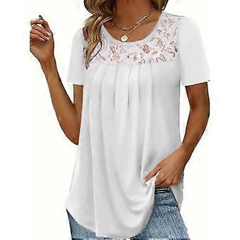 VEZFAA Women's Fashion Casual Summer Spring Solid Color Print Short Sleeve U-Neck Blouses & Shirts