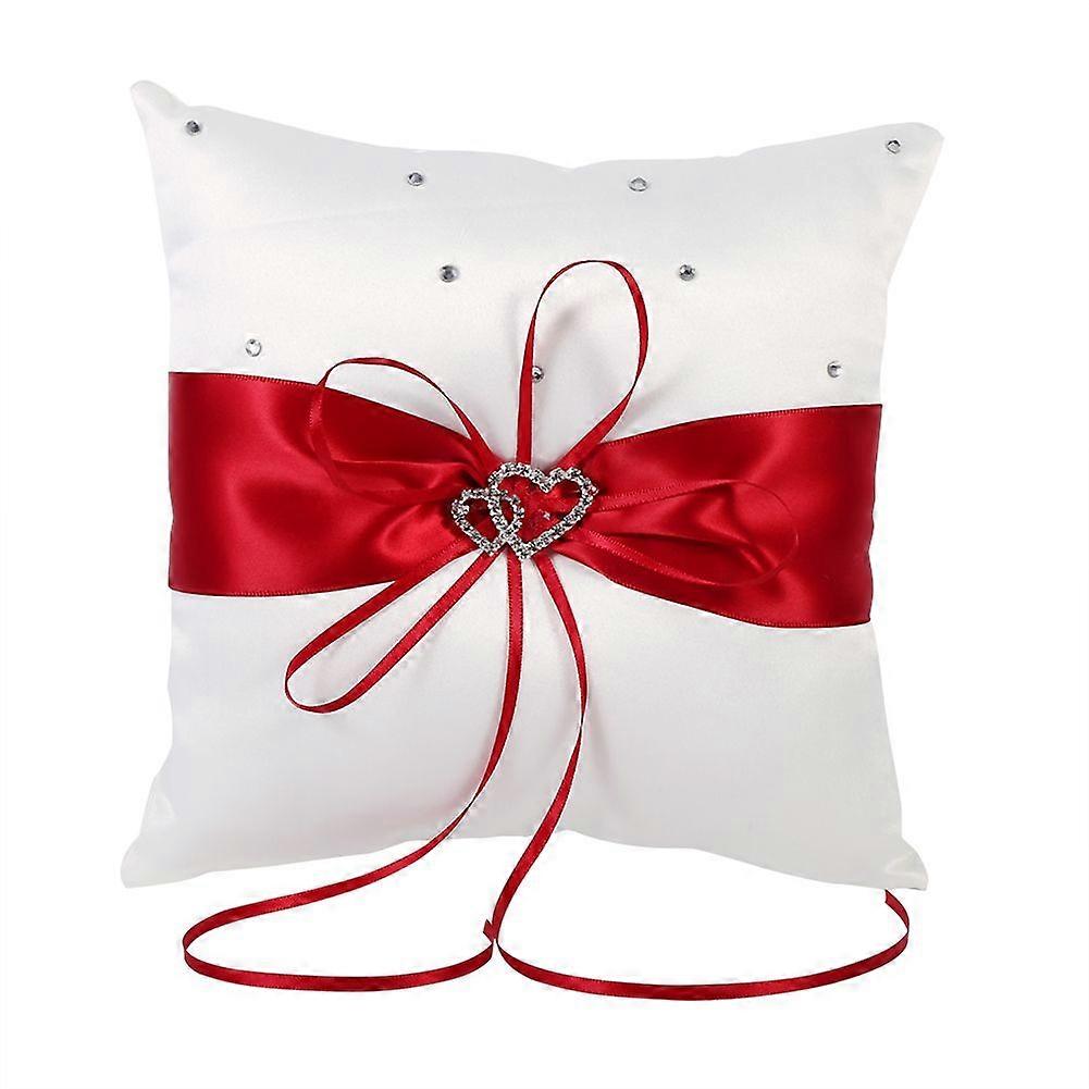 Wedding Ring Bearer Holder Pillow Cushion With Bowknot Stain Double Hearts Diamonds (Red)