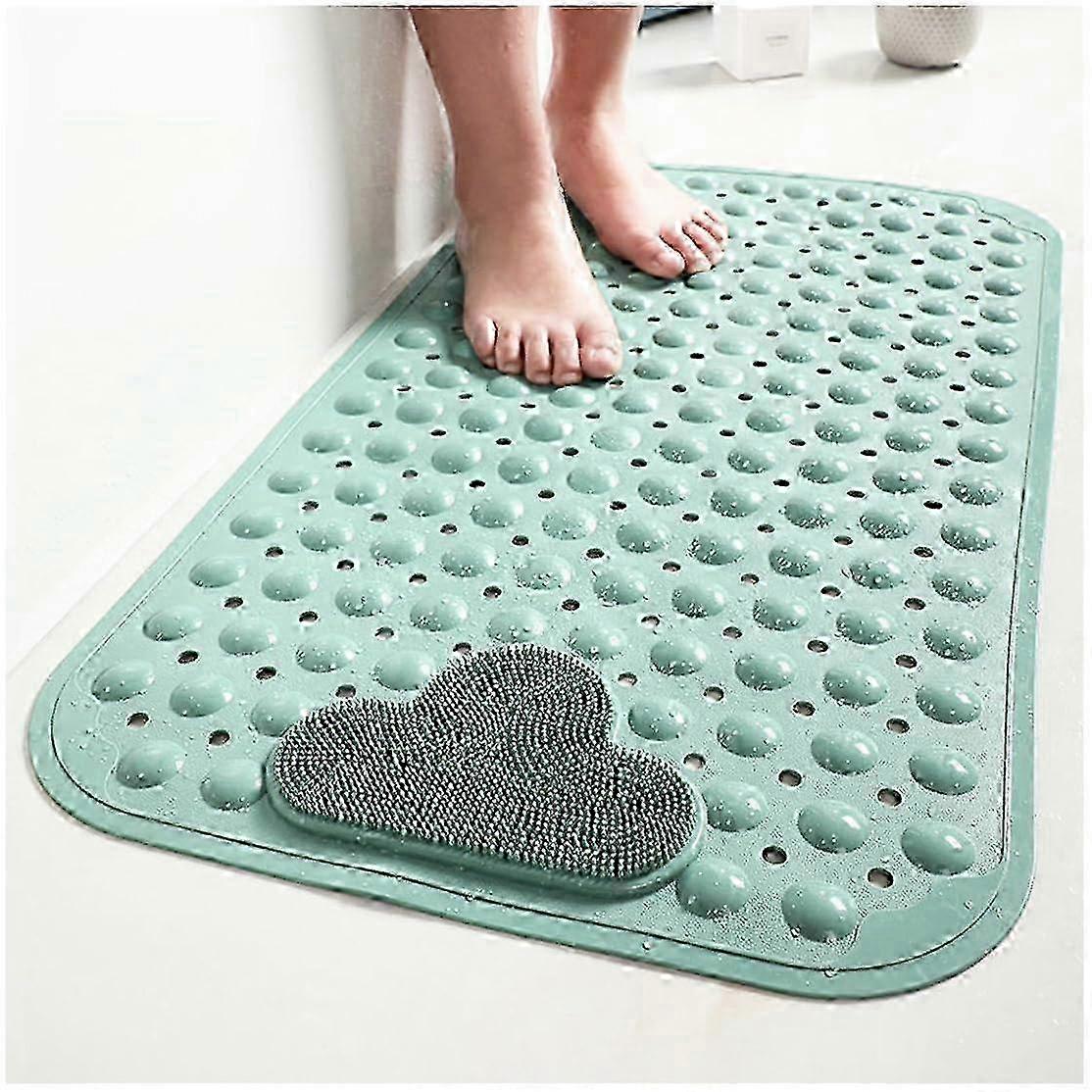 w Shower Mat 80 x 50 cm Non-Slip Bath Mat with Suction Cups TPE Material Massage Design Machine Washable Green Rectangular