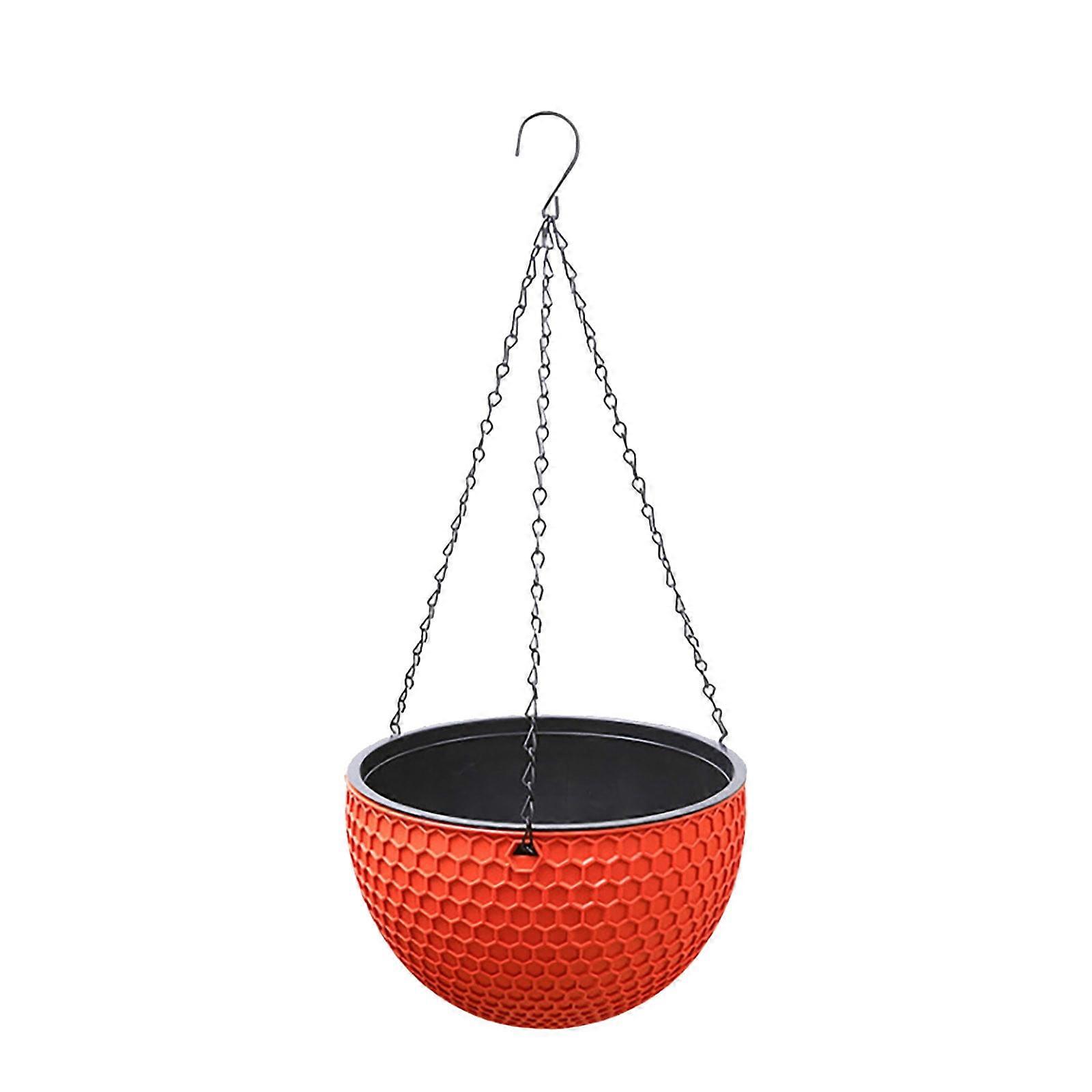 WRXMIJNHGSA Flower Pot Hanging Basket Planter Round Premium Plastic Brown with Drainer & Chain Compatible with Indoor Outdoor Use
