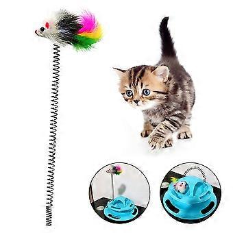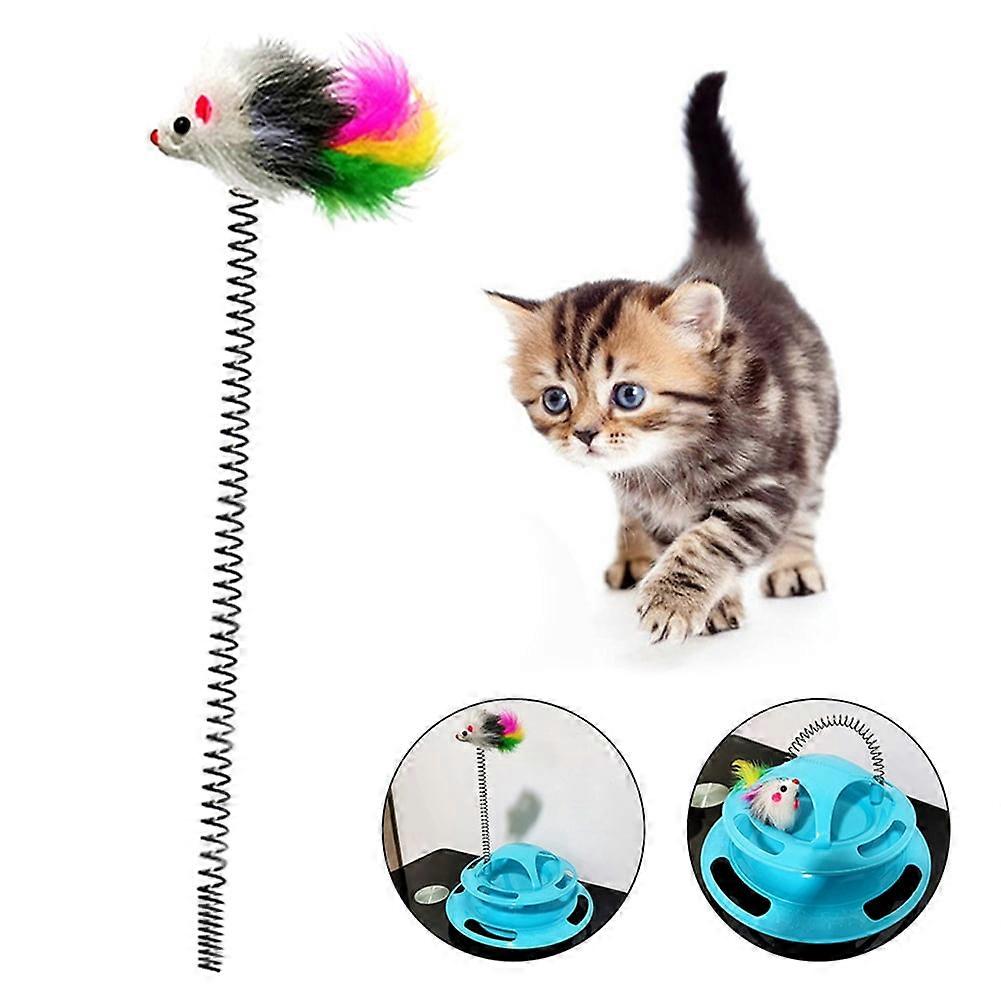 Xeyise Pet Cat Kitten Amusement Disk Feather Turntable Spring Replacement Play Toy