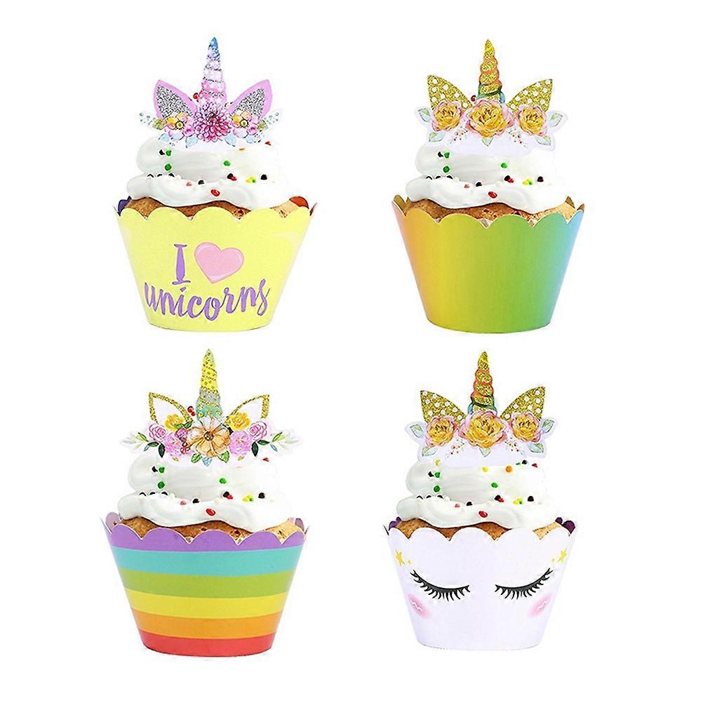 Unicorn Cake Toppers and Wrappers Rainbow Assorted Color Birthday Party Supplies 24Sets