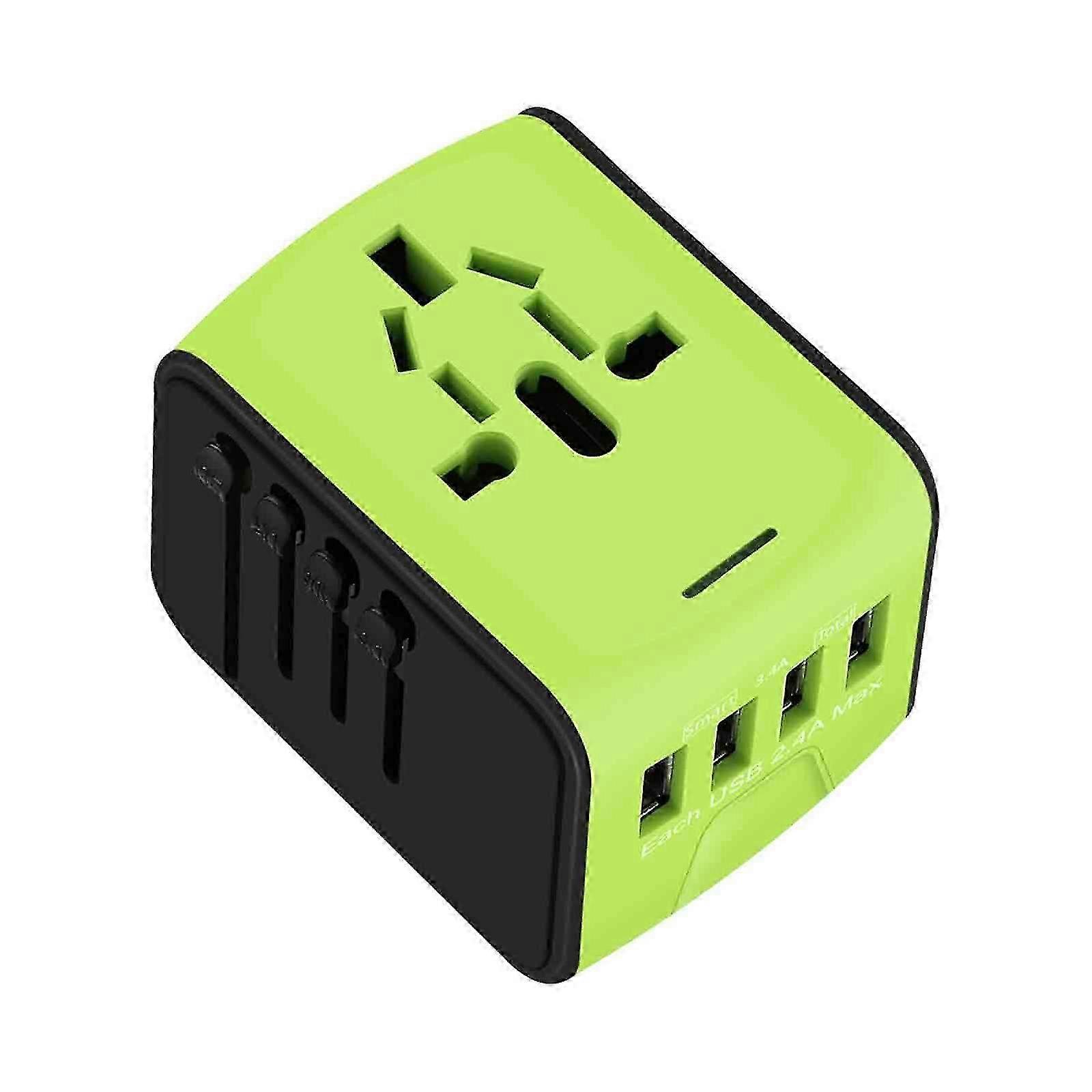Universal Travel Adapter 4USB Ports 3.0A Type-C Fast Charge Green