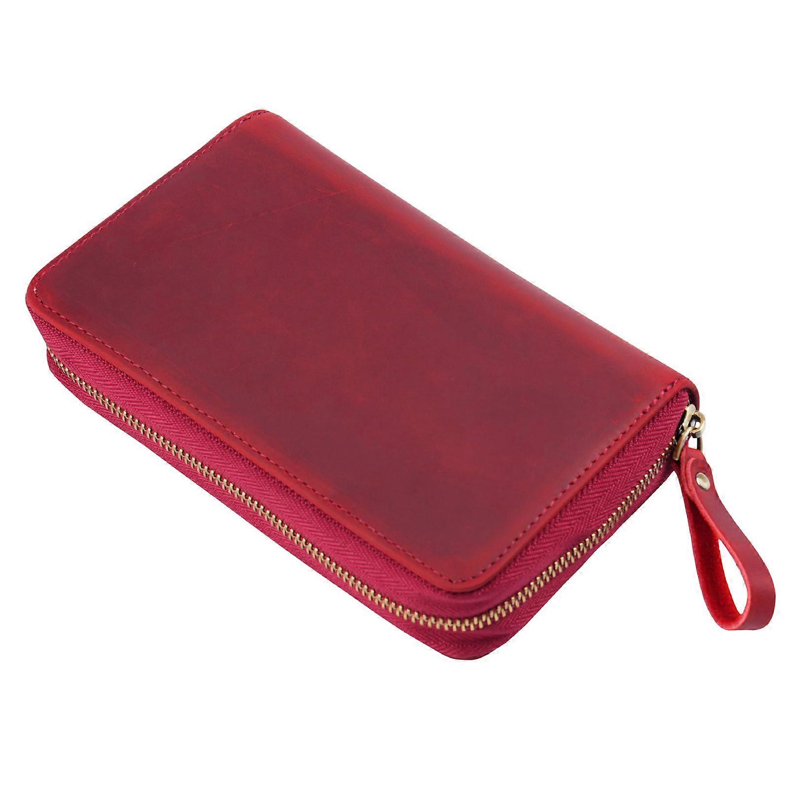 Additional Top Particle Cattlehide Pencil Case For Writers Students Highlighting Permanent Furious Horse Texture Burgundy