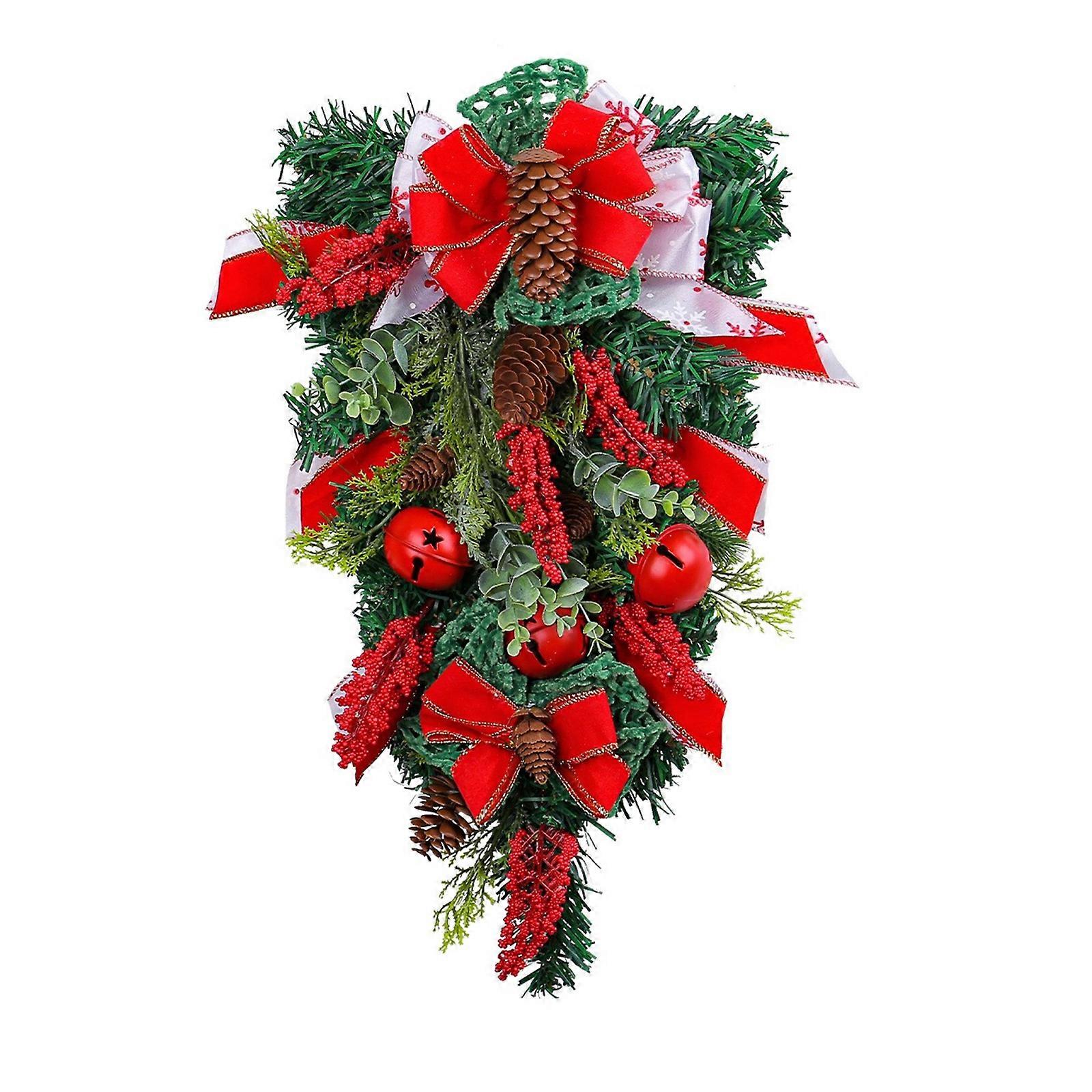 Yuletide Celebration Artificial Wreath Inverted Tree Pendant with Bowknot Wreath Ornament for Warm Christmas Atmosphere Multicolor